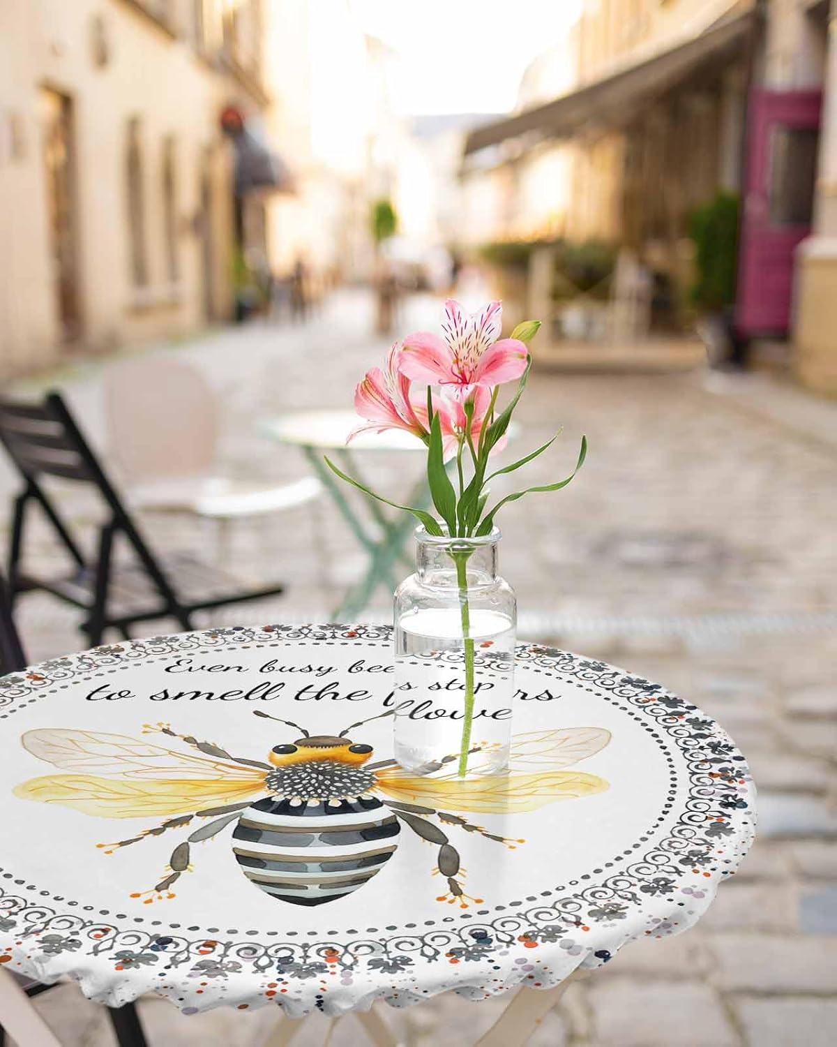 Round Table Covers with Elastic Abstract Spring Bee Fitted Tablecloth Wipable Table Cover Fits Up to 55-60In Tables Table Cloth Protector for Outdoor/Indoor Use Farm Animals Texts Colorful Wave Point