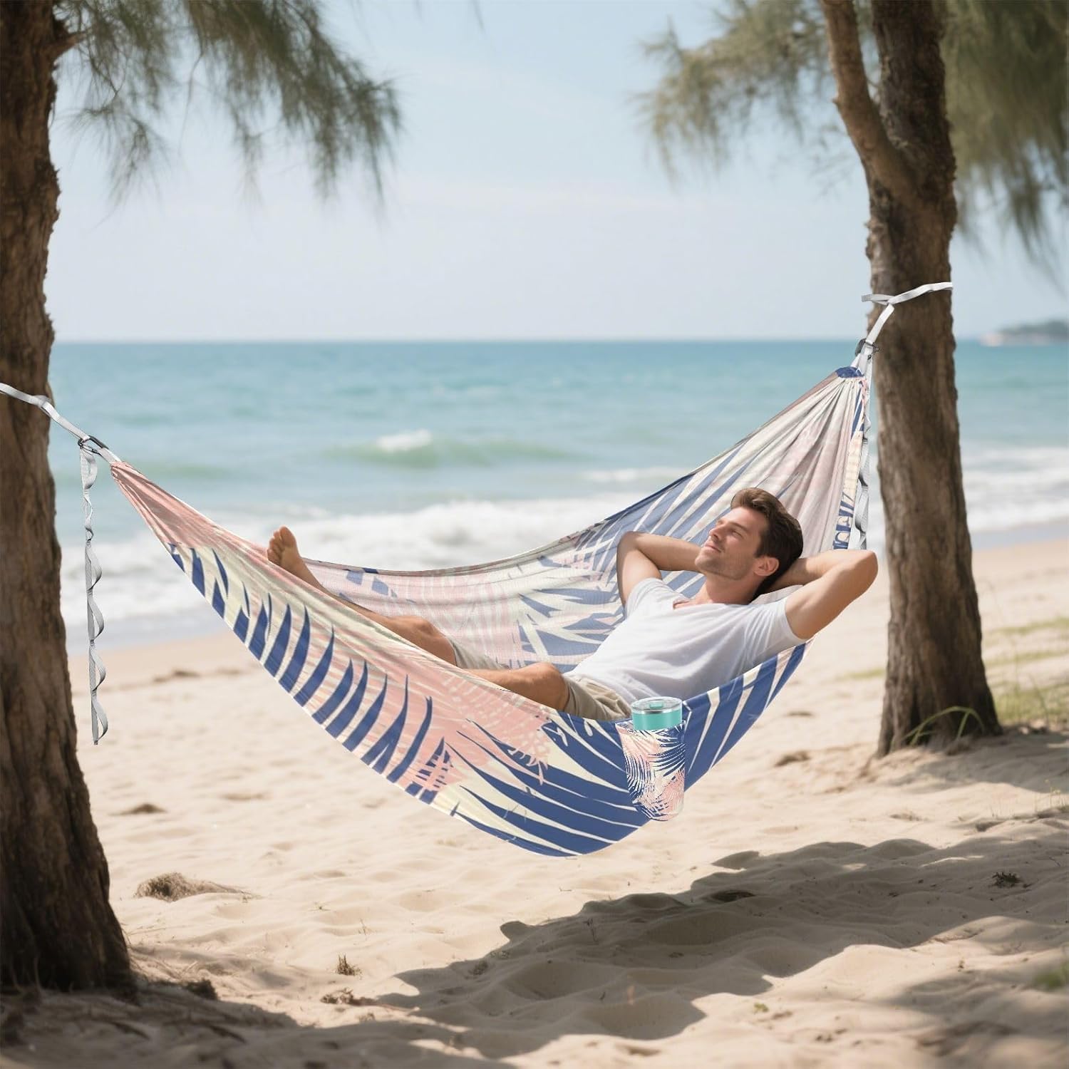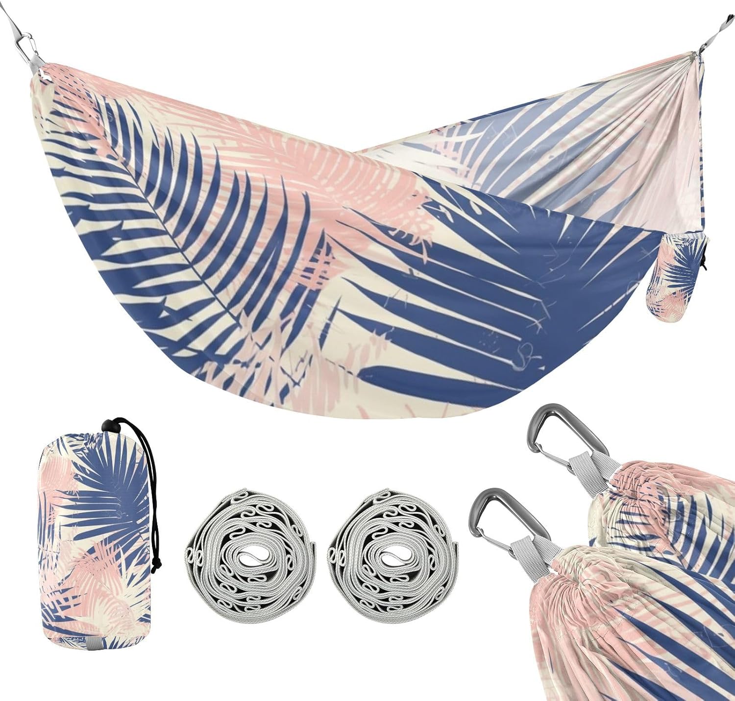 Size: 114 x 54.33 inches /290cm ×138 cm. This singlree Hammock is spacious enough to accommodate 1 adult and 1 child, allowing you to enjoy quality time with your kids. It can bear a load of 330LB/150KG.Material Description: Polyester. Indoor Hammock fabric is made of high-strength and breathable 210T polyester taffeta, which has excellent wear resistance, tear resistance and breathability, ensuring comfort and safety. The climbing buckle is made of aluminum alloy, and three belt is made of high-density 600D imitation nylon webbing, which is sturdy with strong load-bearing capacity.Design: This hammock's webbing is equipped with multiple adjustable rings, making it convenient for users to adjust the height and position of the Rope Hammock according to the actual situation. There are also hanging pockets along the edge of the hammock, which can be used to store personal items.Lightweight and Multi-purpose Hammock: Whether you are going camping, hiking or relaxing in the garden, this Swing Hammock can meet your needs. Moreover, this is a necessity for going camping and having fun.Washing Instructions: Machine washable (Please removhe climbing buckles before machine washing, and storhe webbing in a separate laundry bag before putting it in the washing machine). Do not use detergents such as bleach.