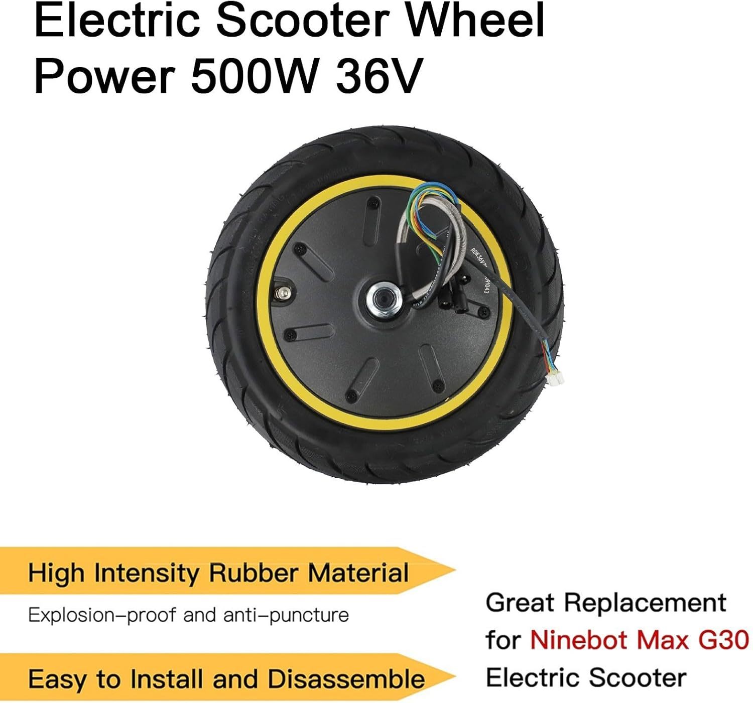 Warn: It is illegal to ride electric scooters on public roads, pavements, or cycle paths. They are intended only for use on private land with the owner's permission.Description:Made of high intensity rubber and metal material, solid and in use.Easy installation, convenient and simple to install and detach, replace quickly.High density and high strength, convenient and practical for long service life.Specification:Material: Rubber + MetalPower: 36V 500WItem Size: 25 * 25 * 17 cm / 9.8 * 9.8 * 6.7 in Item Weight: 3.95 kg / 8.7lb Package Size: 26.3 * 26.3 * 20.5 cm / 10.3 * 10.3 * 8. in Package Weight: 4.34 kg / 9.5lbPackage Includes:* Electric Scooter Motor Engine