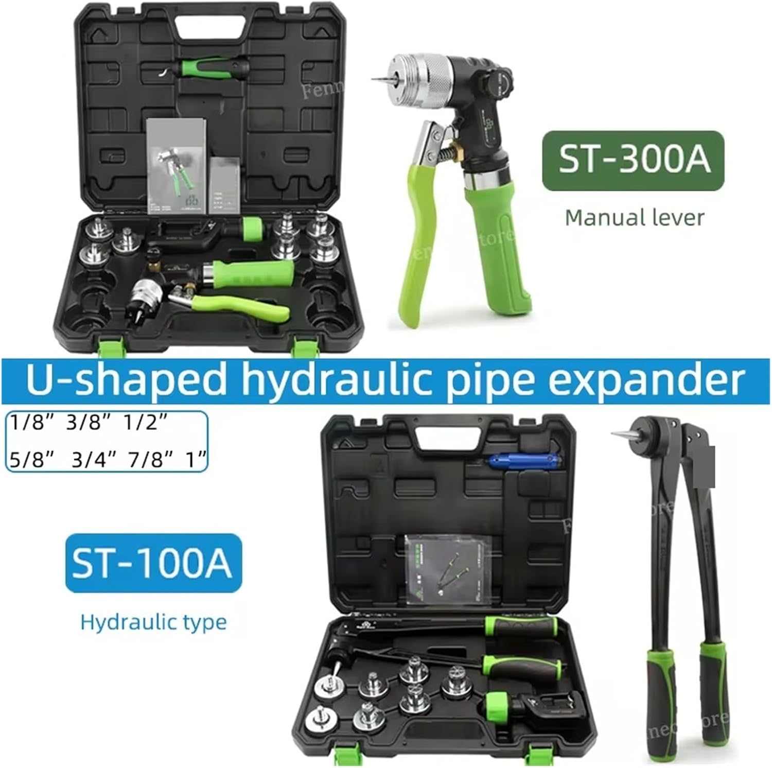 ST-100A ParametersModel: ST-100AExpansion range: 10mm-28mmConfiguration cutter: ST-532 (5-32mm)Support material: copper tube/aluminum tube/thick tube need to be temperedEquipped with trimming knife: CT-207 pen trimming knifePower source: leverage pressureHead configuration: 3/8', 1/2', 5/8', 3/4', 7/8', 1', 1-1/8'Product style: 90 degree right angleProduct size: 420*290*80mmSupport thickness: pipe thickness within 1.5mmProduct weight: 2.6KGST-300A ParametersModel: ST-300AExpansion range: 10mm-28mmConfiguration cutter: ST-532 (5-32mm)Support material: copper tube/aluminum tube/thick tube need to be temperedEquipped with trimming knife: CT-207 pen trimming knifePower source: hydraulic thrustHead configuration: 3/8', 1/2', 5/8', 3/4', 7/8', 1', 1-1/8'Product style: 90 degree right angleProduct size: 420*290*80mmSupport thickness: pipe thickness within 2mmProduct weight: 4.6KG