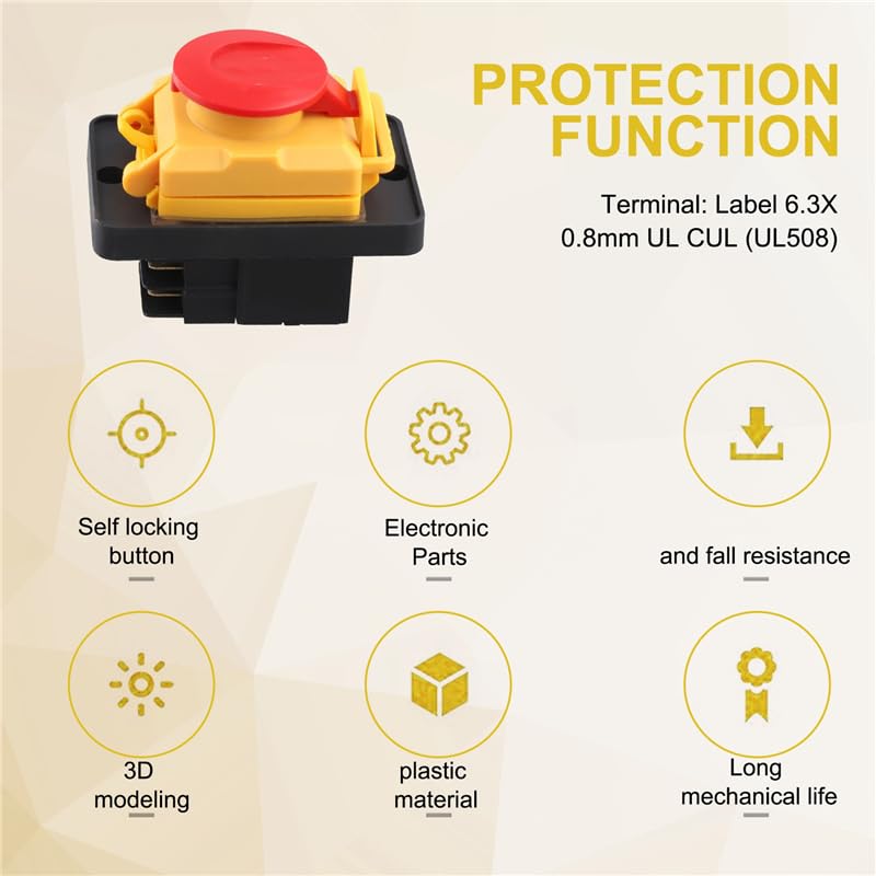 SwitchesHome-Accessories2X KJD12 Electromagnetic Switch KJD12 16A 220V Magnetic Waterproof Explosion-Proof With Emergency Stop Button Rated Voltage:250V-Rated Current:16(12)A 3(1.5)A T85Rated Frequency:50/60HzNumber of Operating Cydes:5E4Degree of protection: IP54Terminals: Tab 6.3X0.8mm UL CUL (UL508)Different production batches may cause color differences, which will not affect the useColour:Photo ColorMaterial:plasticPackage Contents:2 x electromagnetic switchOnly the above package content, other products are not included.Note: Light reflection and different displays may cause the color of the item in the picture a little different from the real thing. The measurement allowed error is +/- 1-3cm.==========Hign-concerned Chemical : NoneMaterial : PlasticOrigin : Mainland Certification : NoneSpecification 1 : Start Stop SwitchSpecification 2 : No Volt Release SwitchSpecification 3 : Emergency Stop Push ButtonSpecification 4 : Push Button SwitchSpecification 5 : Switch with emergency stop