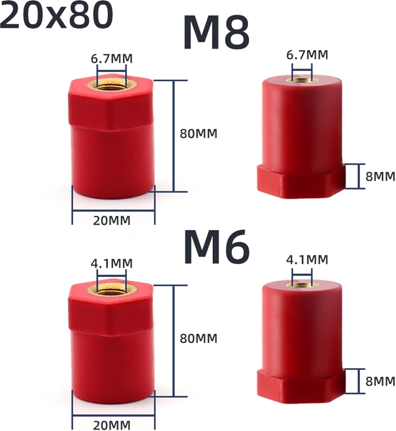 Rectangular ConnectorsInsulator Low Voltage Diameter 20mm Height Insulating Post Hexagonal Copper Core Post Thread M6 M8 1Pcs