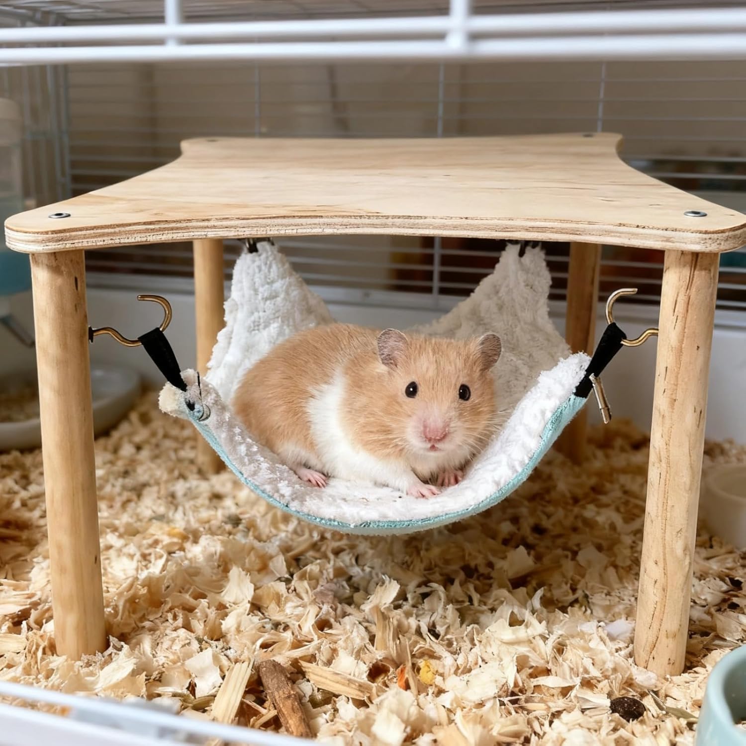Color: Wood Color Material: Wood, Velvet Size: Product Size: 11.81 in x 11.81 in x 9.45 in/30 cm x 30 cm x 24 cm Package Includes: 1 x Guinea Pig Hammock, 1 x Velvet Mat Note: - Please refer to the measurement. Tiny measuring error is allowable in normal range. - There might be a little color difference due to the monitor, camera or other factors, please refer to the physical item.