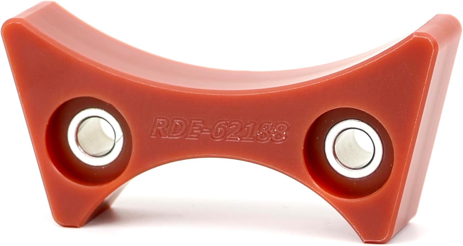 RDE 62188 Timing Chain Damper for LS1 and LS6 Blocks *LS1/LS6 ONLY - Will not fit later engine blocks* Designed to mimic GM 88958607, these dampeners will fit GM Gen III** LS blocks that came from the factory with the holes already drilled and tapped. Engine fitment includes LS1, LS6 and some early truck engines. Will NOT fit Gen 4 blocks. Dampeners will work with either single row or double row chains. The bolt spacing measures ~2.1” center to center and the dampener is machined from a high temperature, low friction nylon. ** Due to variations in GM manufacturing, some 2004 later model blocks as well as reproduction blocks may have the narrower LS2 bolt spacing of 1.7”. Please verify hole existence and spacing on your block before purchase. Made in the USA!!