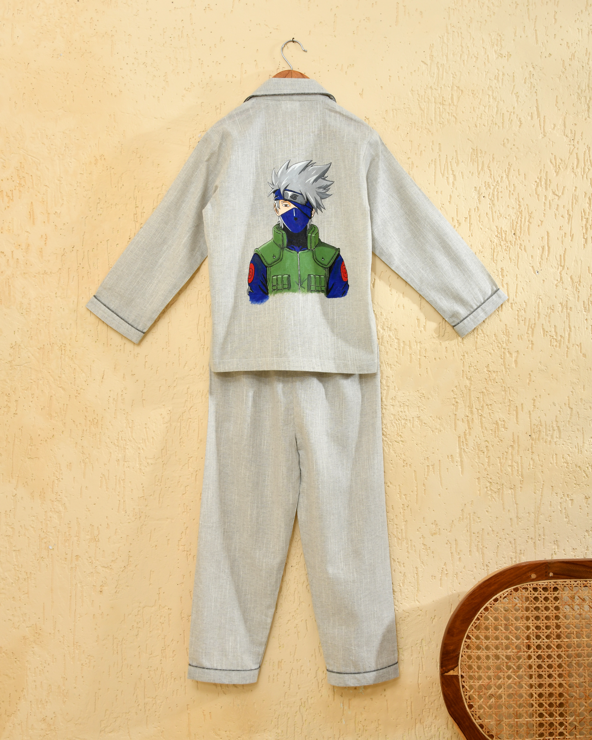 Rui Batte presents a fun and comfortable cotton night suit featuring a unique ninja anime handpainted design. Crafted from soft, breathable cotton, this sleepwear keeps kids cool, cozy, and relaxed throughout the night. The playful handpainted artwork adds character and individuality, making bedtime more exciting while ensuring skin-friendly comfort for everyday use.