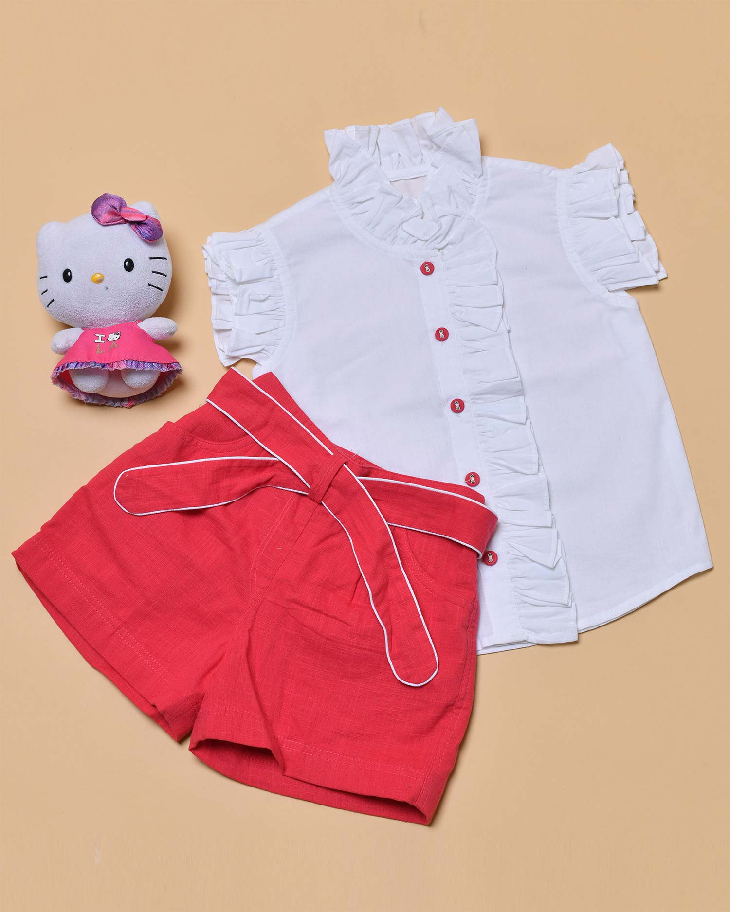 Elevate your child’s wardrobe with RuiBatte’s Party Wear, a delightful ensemble crafted to charm at every occasion. This set includes a pristine white cotton shirt, meticulously detailed with vibrant red fabric buttons and delicate frills on either side, adding a touch of playful elegance. The accompanying cherry red shorts are both stylish and comfortable, featuring a convenient front tie belt that ensures a snug fit. Made from premium cotton, this outfit not only promises durability but also offers a gentle feel against your child’s skin. Whether attending a festive gathering or enjoying a day of fun-filled activities, RuiBatte’s Party Wear ensures your little one looks effortlessly stylish while maintaining comfort throughout the day. Care instructions recommend a gentle wash and washing light colors separately to preserve the pristine white and vibrant red hues of this charming ensemble.