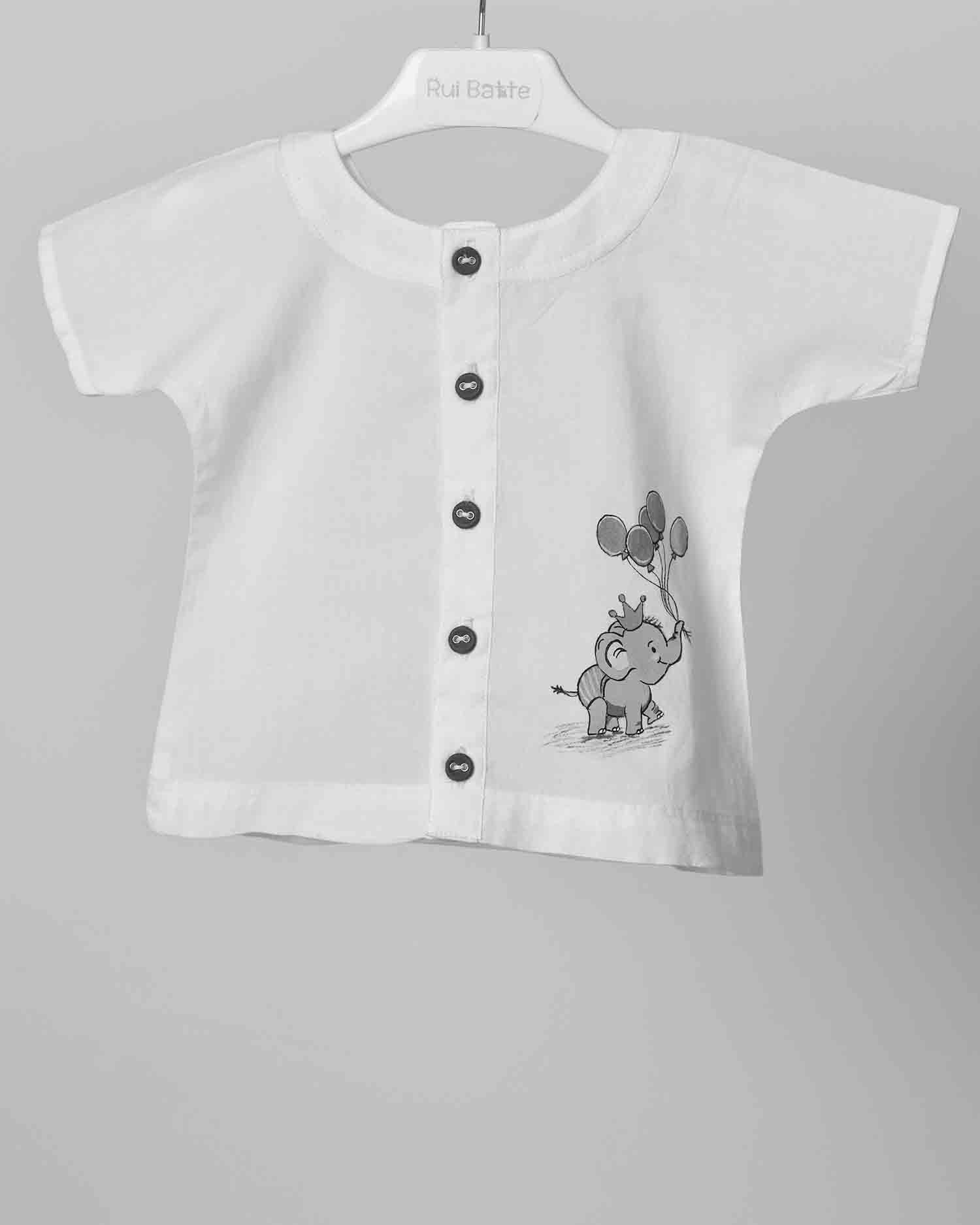 Rui Batte proudly presents an enchanting addition to your infant boy’s wardrobe: our white cotton shirt adorned with a delightful hand-painted Pretty Elephant. This unique design is complemented by blue cotton buttons, adding a touch of color and charm. Crafted from high-quality cotton, this shirt promises softness and comfort for your little one. We understand that every child is unique, which is why we offer customization on order, allowing you to create a truly personalized piece. Easy to care for, this shirt requires a gentle wash and should be washed separately from light colors. Choose Rui Batte for a perfect blend of style, comfort, and individuality for your infant boy.